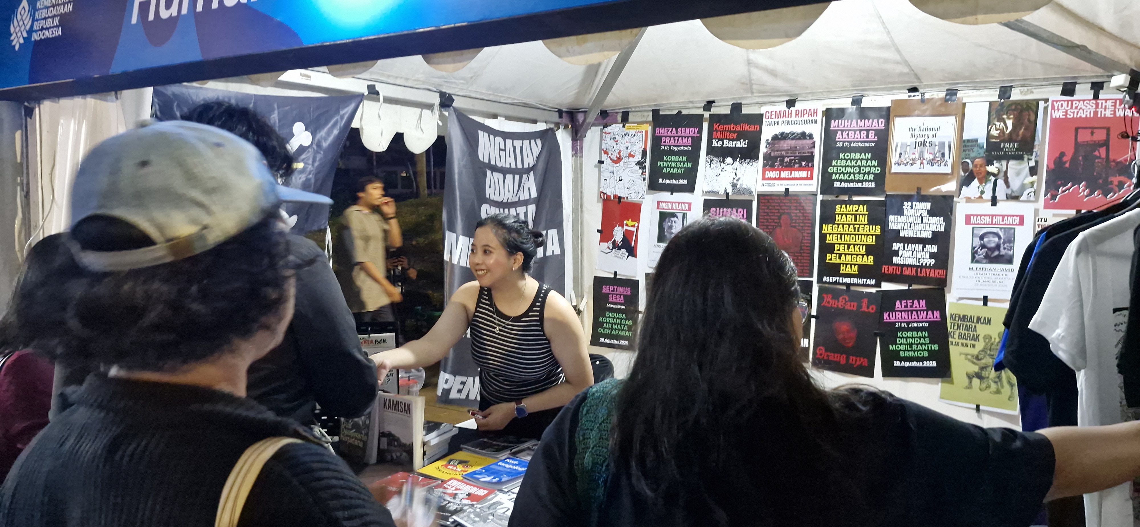 Dalam acara ini, KontraS & Human Loves Human memamerkan berbagai produk kampanye soal HAM & Demokrasi, seperti poster-poster terkait berbagai kasus pelanggaran HAM maupun pelanggaran berat HAM yang ditangani KontraS, Zine #Kwitangologi dengan 13 edisi yang menampilkan berbagai situasi HAM, sosial dan politik yang juga merupakan submisi dari warga.